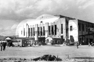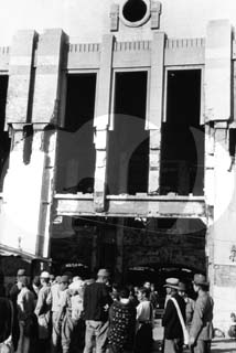 広島駅舎内中央ホールの破壊状況。爆心地から東北東2km。東区松原町。