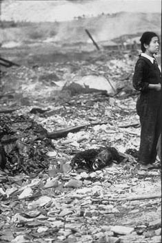 焼死体のわきに、呆然と立ち尽くす若い女性。